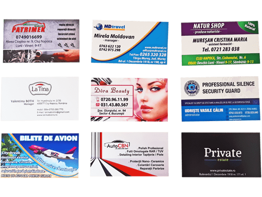 * Atat pe formatele clasice 90×50 mm, 85×55 mm cat si pe formate atipice (dimensiunea dorita)